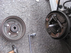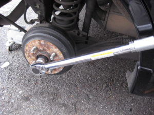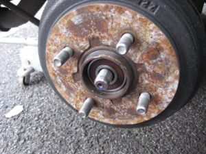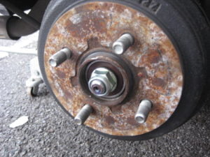 まずは、タイヤを外し、ドラムを外す為、センターナットを露出させます。