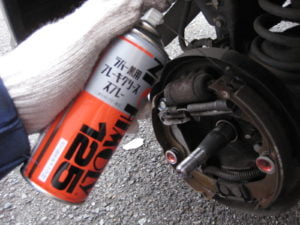 ブレーキシューとバックプレートとの隙間には、マイナスドライバーなどを使用し隙間を開けてあげ、シューっとスプレーしてあげることで、簡単にグリスアップができます。