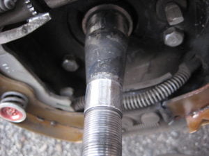 スピンドルにベアリングをスムーズに入れ込む為、また焼き付きを防ぐために、スピンドルにもグリスを薄ーく塗ります。ネジ部には塗らないこと。