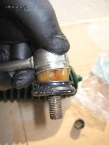 三菱では、やはりリンク丸ごとの交換になりますので高い(片側約4000円)ので、かなり安く済むためブーツのみの交換とします。