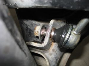 スタビライザーリンクを取り外すため、上下のナットを取り外します。