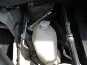 まずは、ボンネットを開けて、冷却水のコンデンスタンクを取り外します。