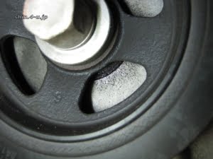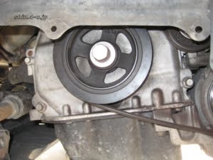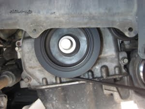 次に、クランクシャフトプーリーを取り外しますが、かなりの力で締まっています。