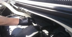 まずは、ボンネットフードを開け、オイル入り口の確保です。