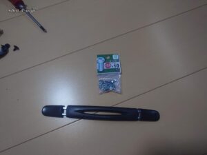 持ち手は届きましたが、固定のビスが付属していませんでしたので、ホームセンターで購入しました。