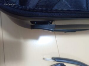 スーツケースの裏側、開けたことのないチャックを開けて取っ手の裏側を覗きます。