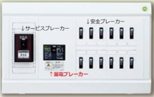 ブレーカーには 決まった容量で落ちるサービスブレーカーと、 各部屋に入って各部屋のショートなどを検知する安全ブレーカーと 漏電を検知する漏電ブレーカーがあります 。