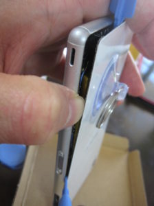 バッテリーとカバーの接着もありましたが、カードを突っ込むと案外簡単に外れます。